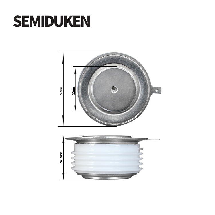 The DKT400 11-18 Phase Control Thyristor is designed for high-efficiency power control in industrial applications. It features a center amplifying gate for precise switching control and a durable metal case with ceramic insulation, providing both reliability and optimal performance. This thyristor can handle up to 400A of average on-state current and surge currents up to 5kA, making it ideal for AC controllers, DC and AC motor control, and controlled rectifiers. Its low on-state voltage drop and minimal switching losses enhance overall system efficiency, while its excellent thermal performance ensures safe and reliable operation in demanding environments.