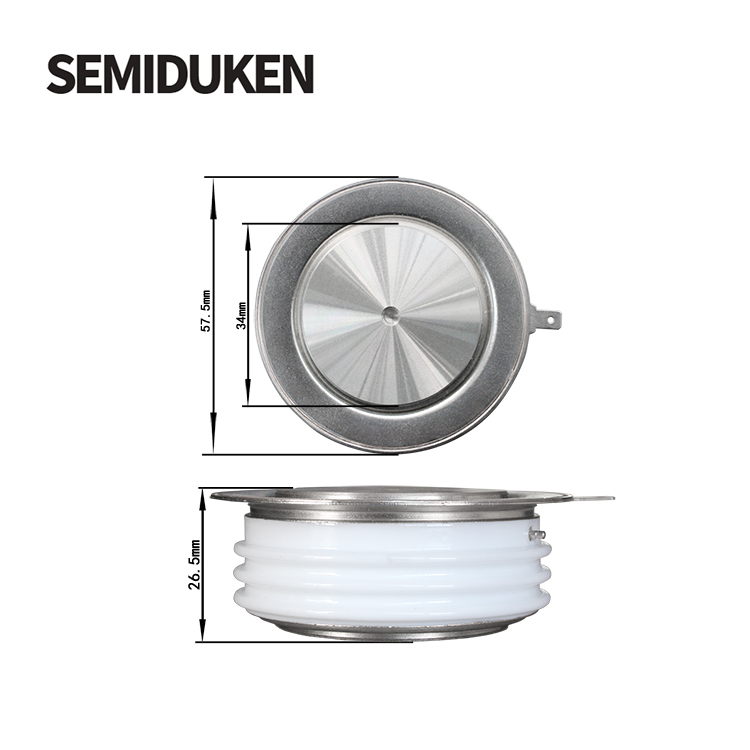 The DKT500 11-18 Phase Control Thyristor is designed for high-efficiency power control applications in large power converters, DC and AC switches, and inverters. It features a center amplifying gate for precise switching control and a robust metal case with ceramic insulation for durability and efficient thermal management. With a surge current capacity of up to 11kA and a voltage range of 1100V to 1800V, this thyristor is ideal for demanding industrial systems that require high power handling and reliable performance.