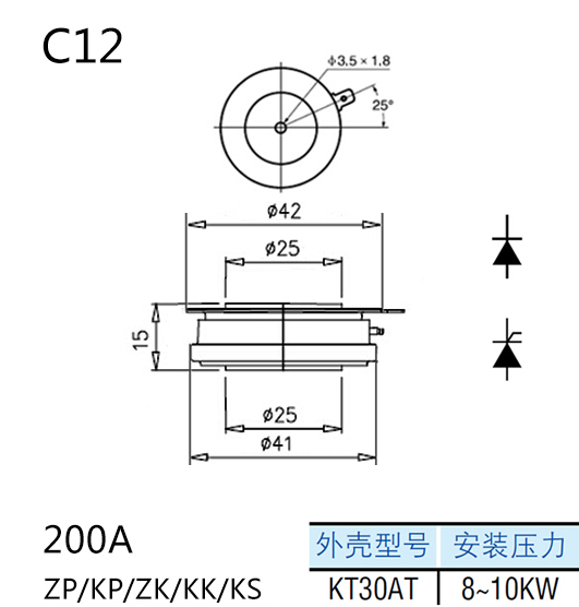 The KG200A 8-14 is a high-frequency thyristor designed for fast switching and precise power control in demanding industrial applications. Featuring interdigitated amplifying gates and a hermetically sealed metal-ceramic package, this device ensures high di/dt capability, short turn-off time, and robust thermal performance. It is ideal for use in electronic welders, induction heating systems, and self-commutated inverters .